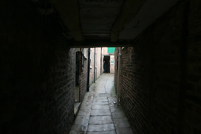 The Snickleways in York are these really thin passages between the old buildings, only really wide enough for one person to get through at a time, or two if they squeeze. They're really fascinating spaces, mysterious, and drawing you through them with the light at the end of the next street over. (They're basically secret passages, or so it feels when you're in one.)